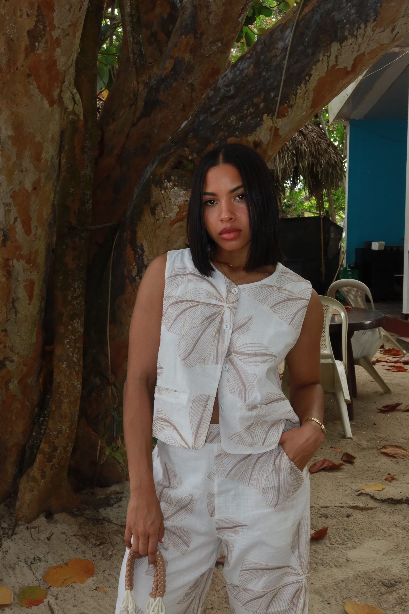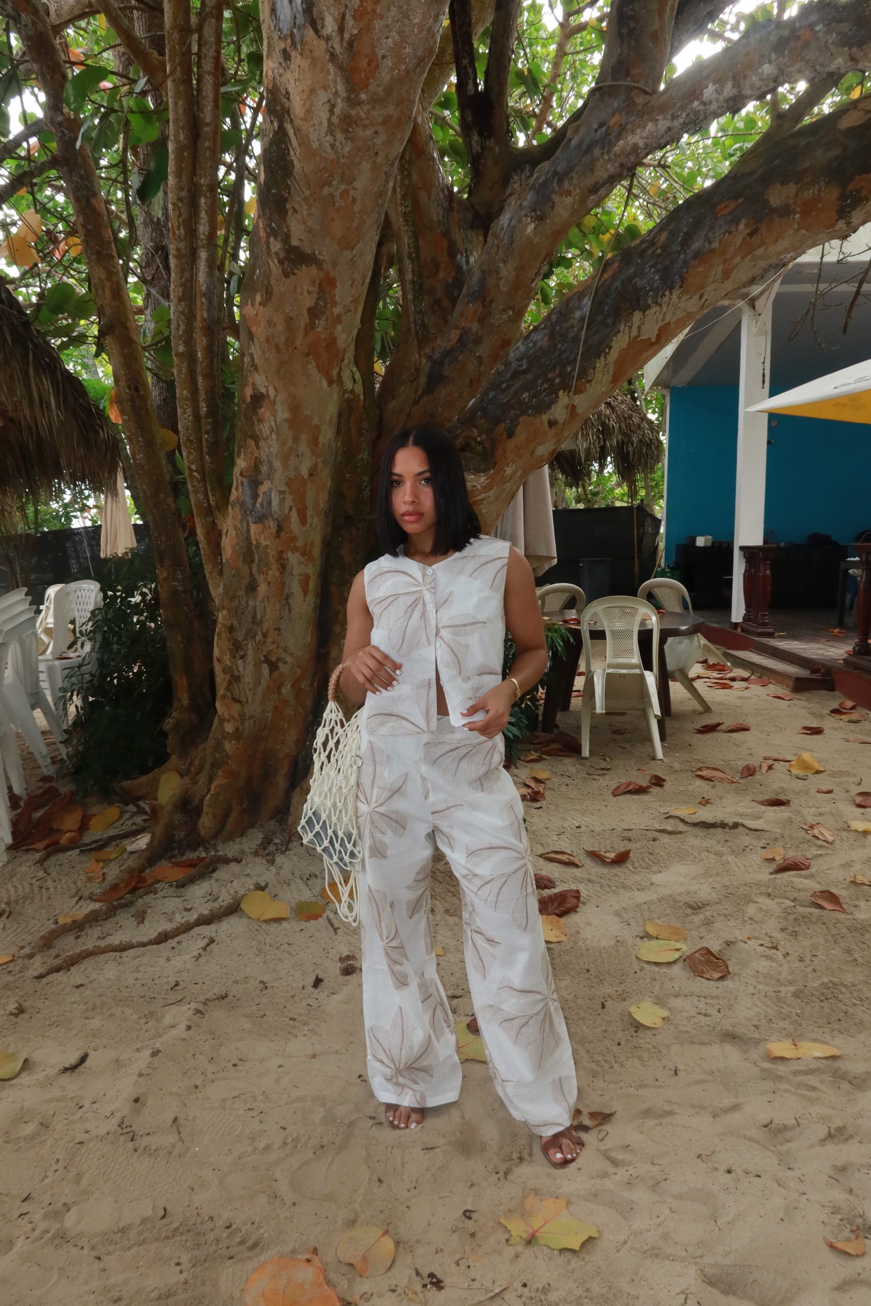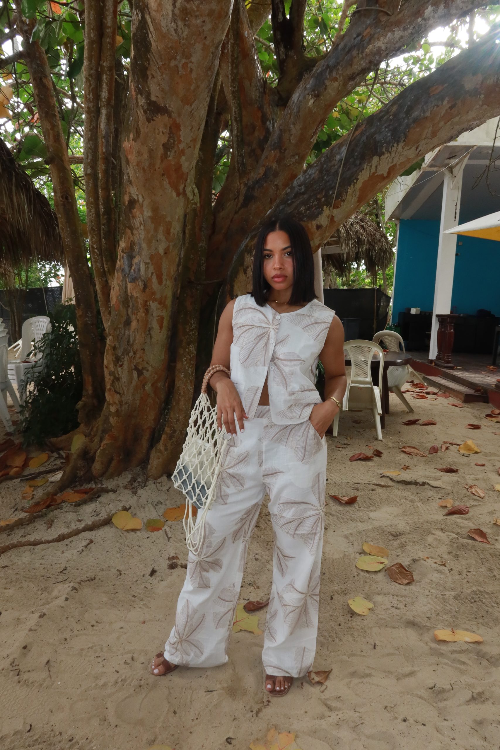 Set verde bohemio con detalles artesanales.