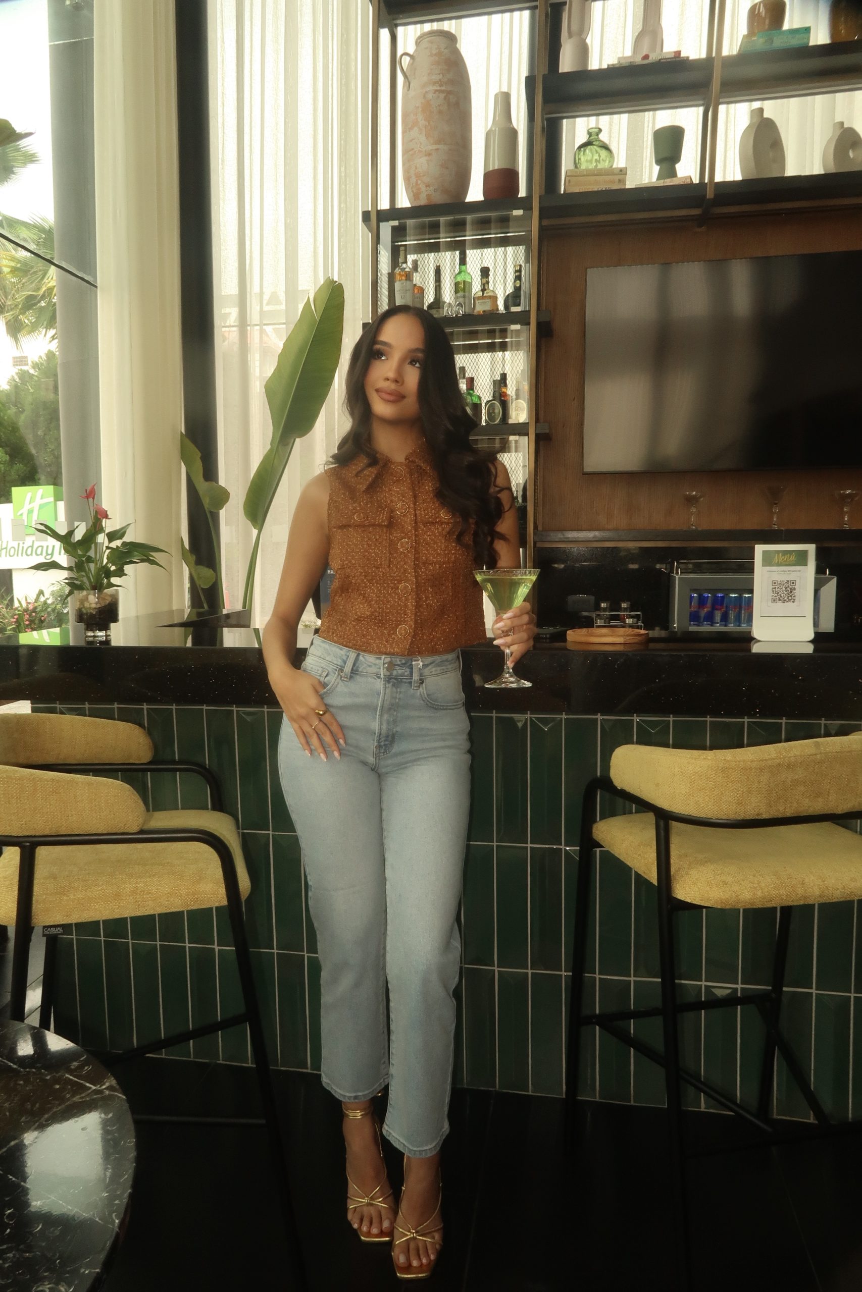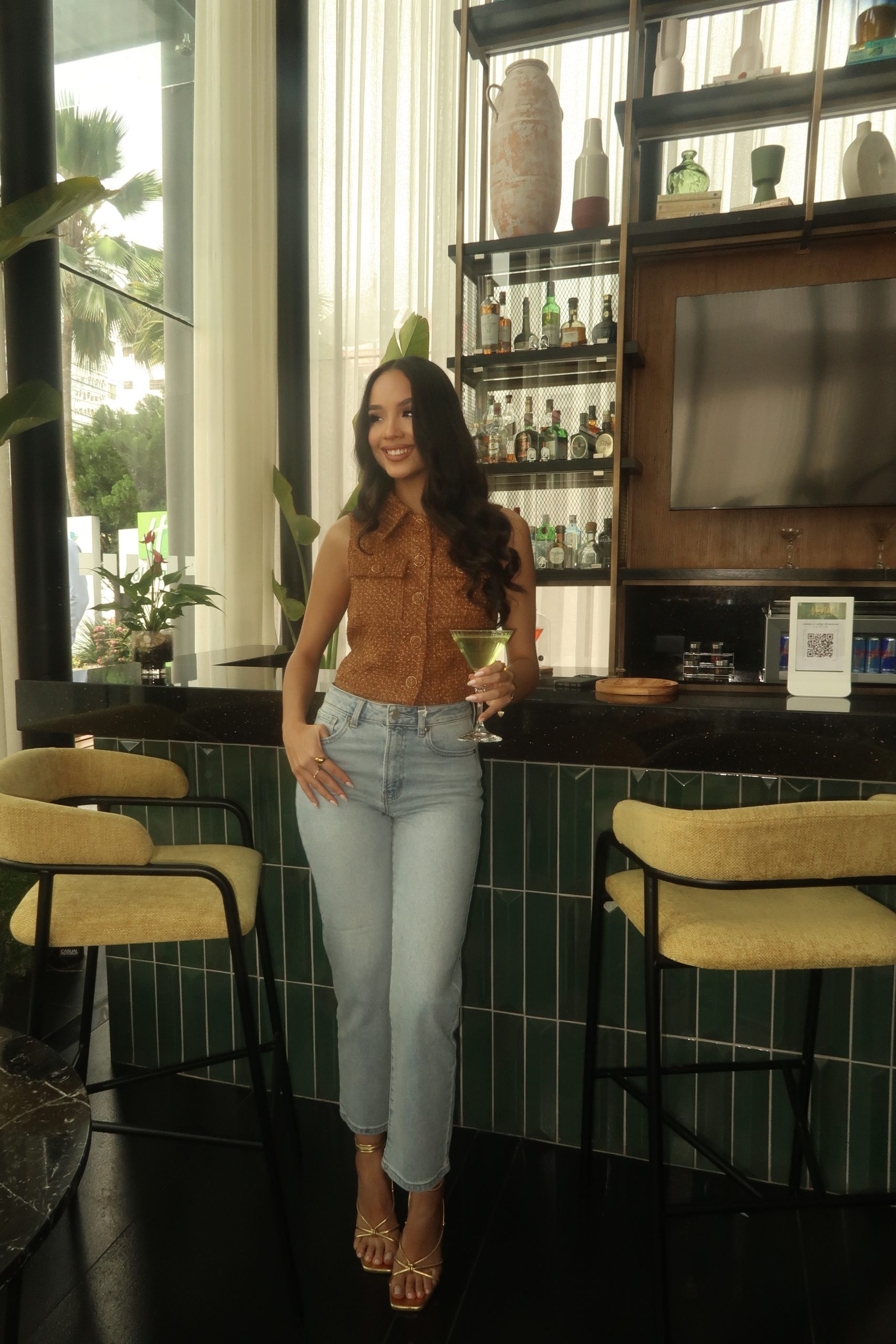 Jean de tiro alto, corte recto y ajuste favorecedor.