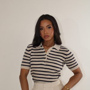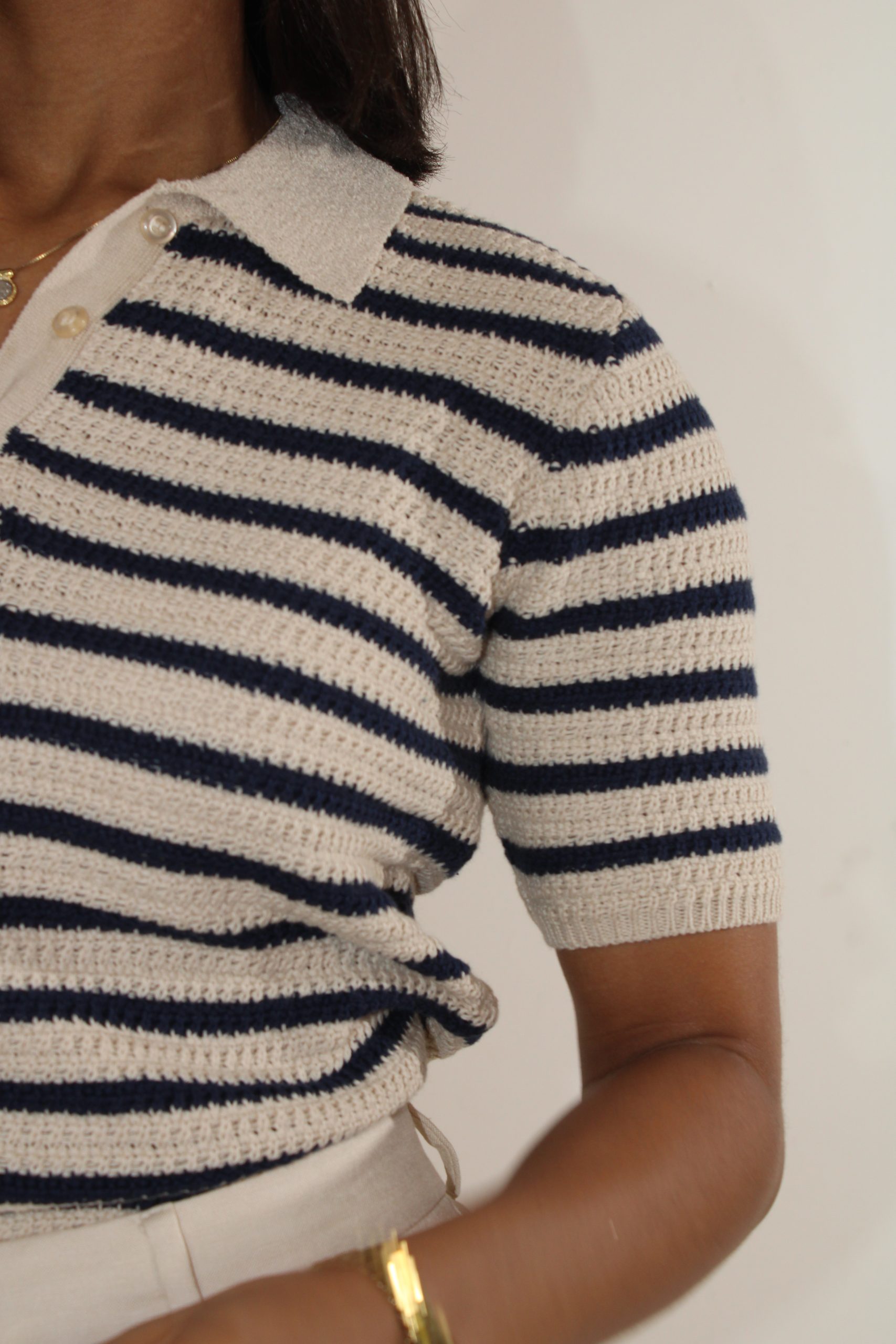 T-shirt crochet beige versátil y fresca.