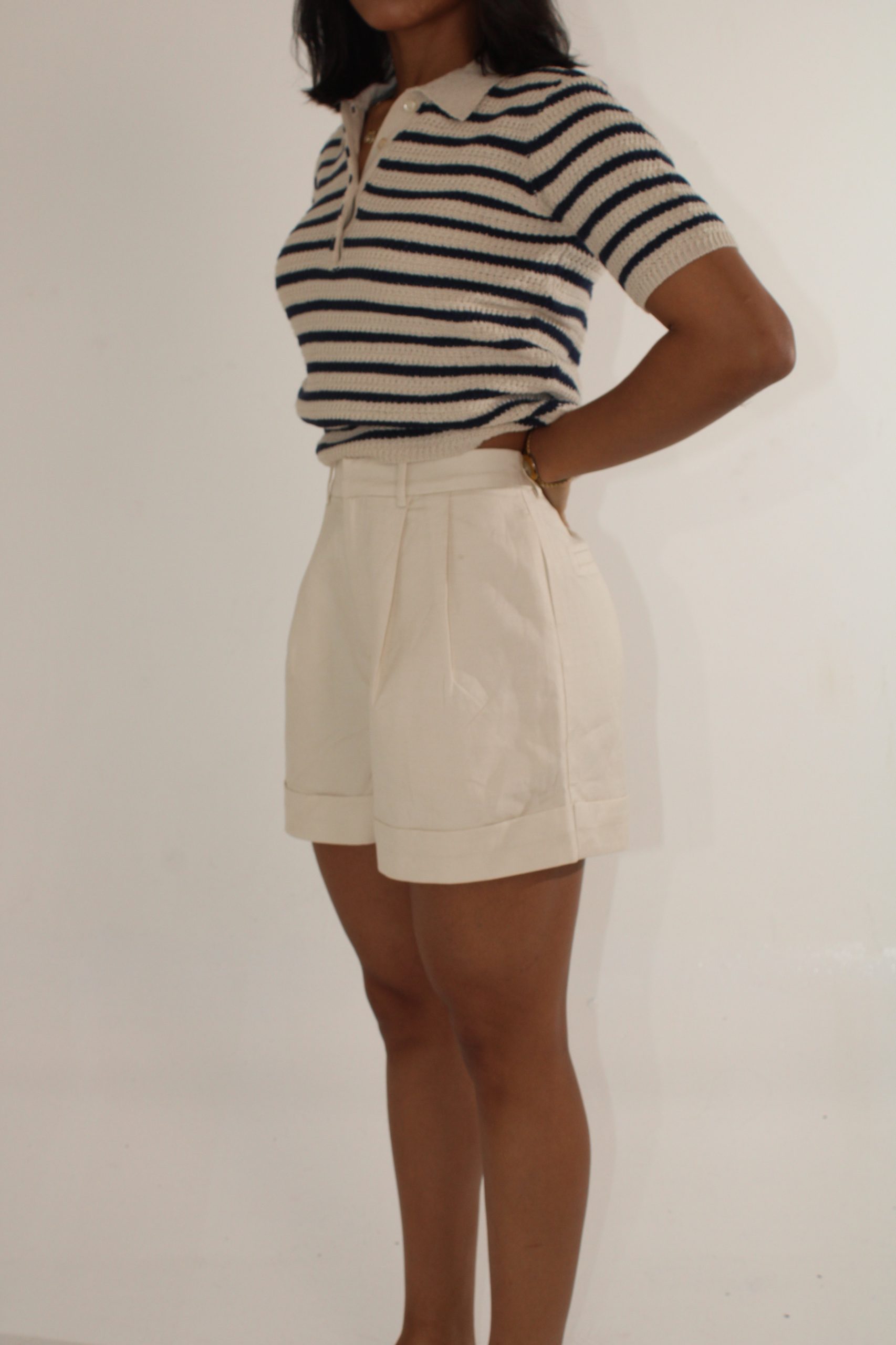 Short de lino beige con corte clásico y elegante.